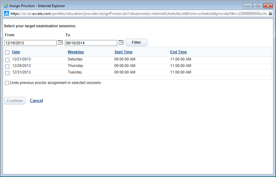 7. Click Assign Proctors for the exam site where you need a proctor.